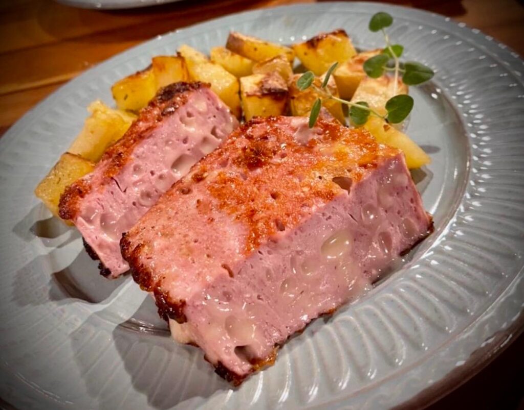 Tava se introduce în cuptorul preîncălzit la 160°C, unde preparatul se coace timp de 60–75 de minute, până când suprafața devine aurie și apetisantă. După coacere, parizerul copt – Leberkäse – se lasă să se răcească ușor, apoi se feliază. Se servește tradițional cald, alături de muștar dulce și chifle proaspete, exact ca în Bavaria.