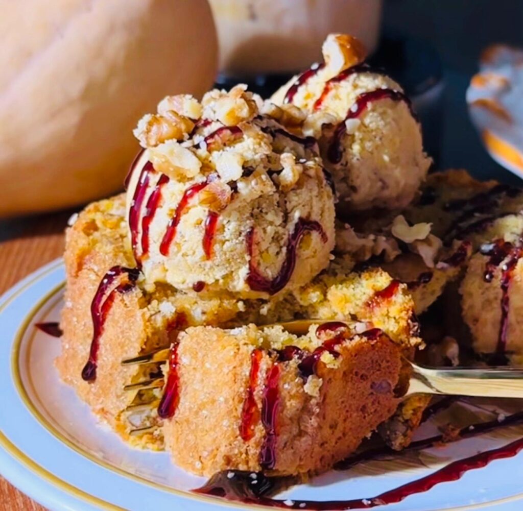Înghețata cu dovleac se servește în compania unui chec, tot cu dovleac, pentru a simți din plin aroma vedetă a sezonului. Sau o puteți servi cu diverse toppinguri, de la miere la ciocolată sau nuci prăjite.