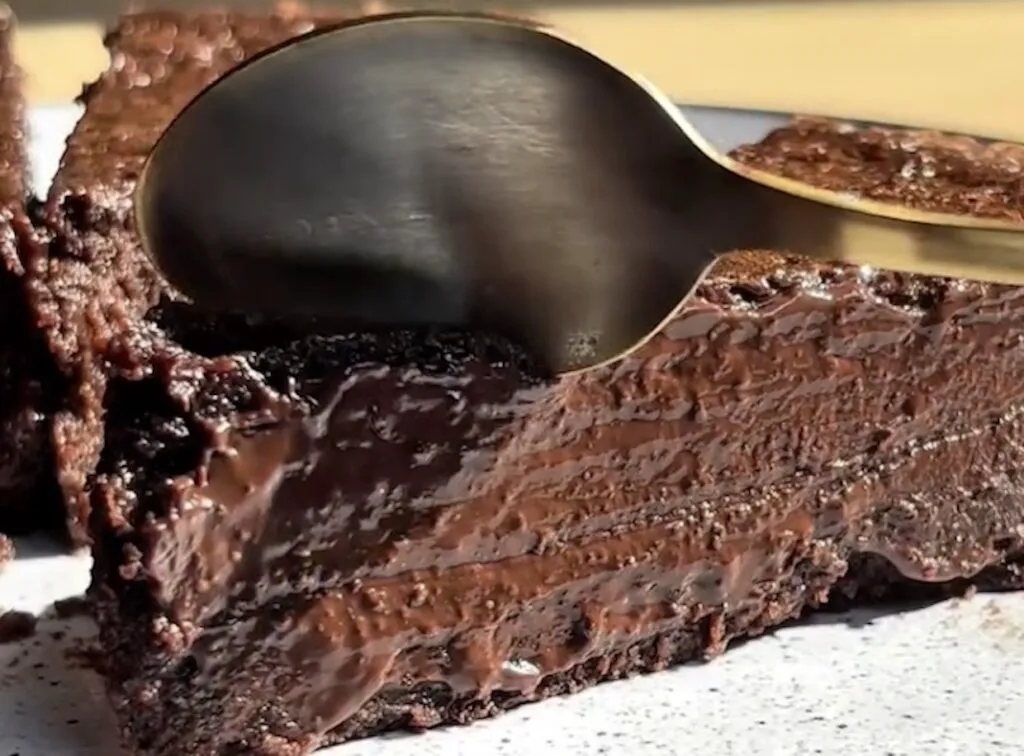 Pentru a obține gustul și textura perfecte, desertul se lasă la frigider cel puțin o noapte înainte de servire. În acest timp, ciocolata își dezvoltă aromele, iar prăjitura capătă un echilibru perfect între miezul fondant și marginile ușor crocante.