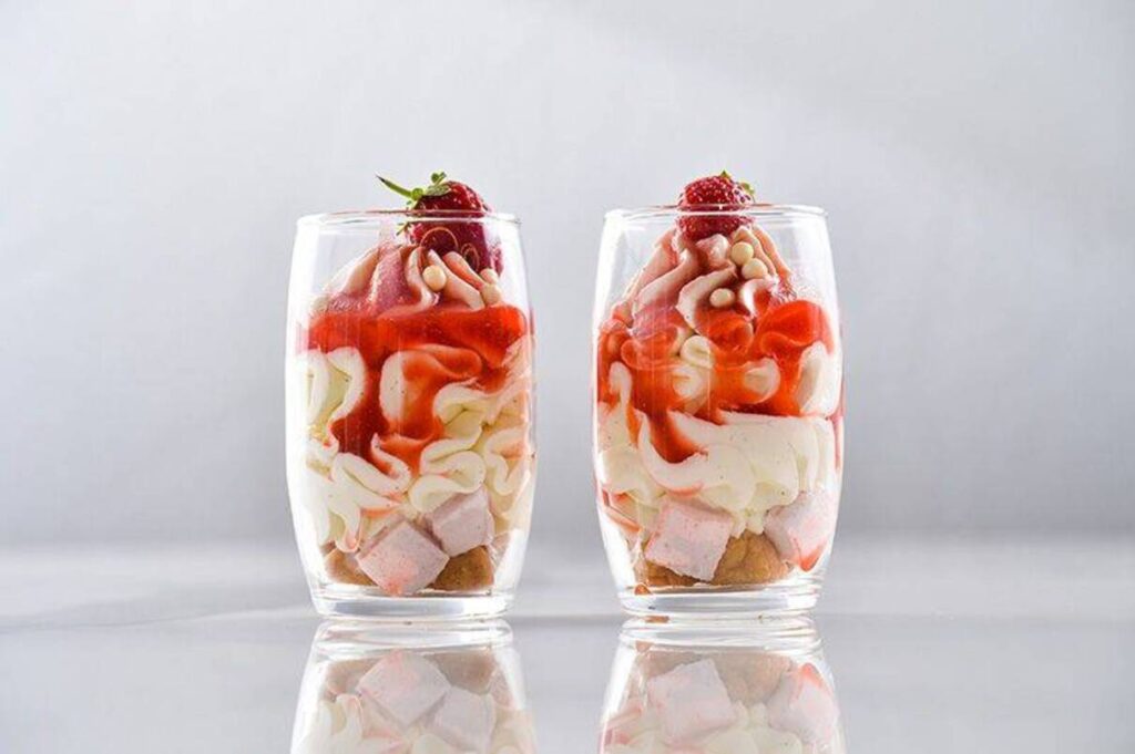 Fraise Melba este o reinterpretare modernă a celebrului Peach Melba, creat la sfârșitul secolului XIX de bucătarul Escoffier în cinstea sopranei Nellie Melba. În varianta cu căpșuni, desertul devine mai proaspăt, mai ușor și perfect pentru orice anotimp.