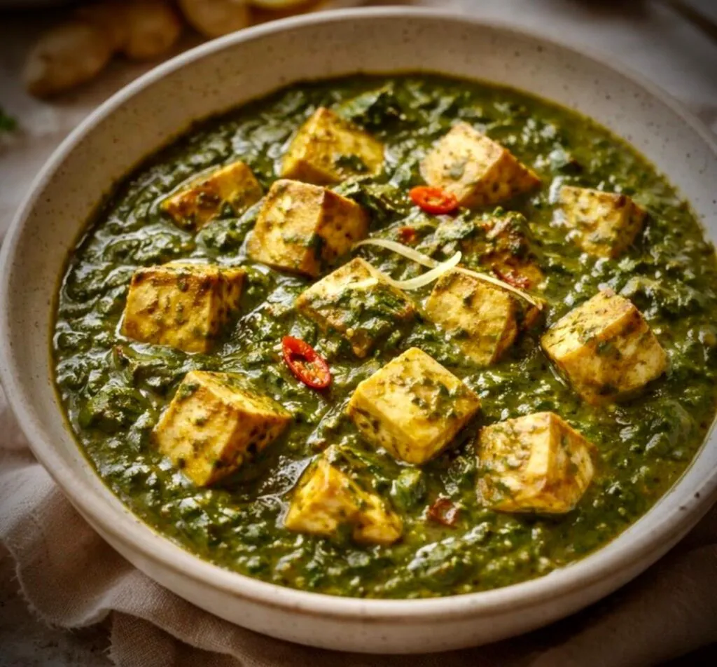 Acest preparat inspirat din bucătăria indiană oferă o textură cremoasă, încărcată de aromele calde ale condimentelor și de prospețimea spanacului, toate într-o combinație armonioasă.