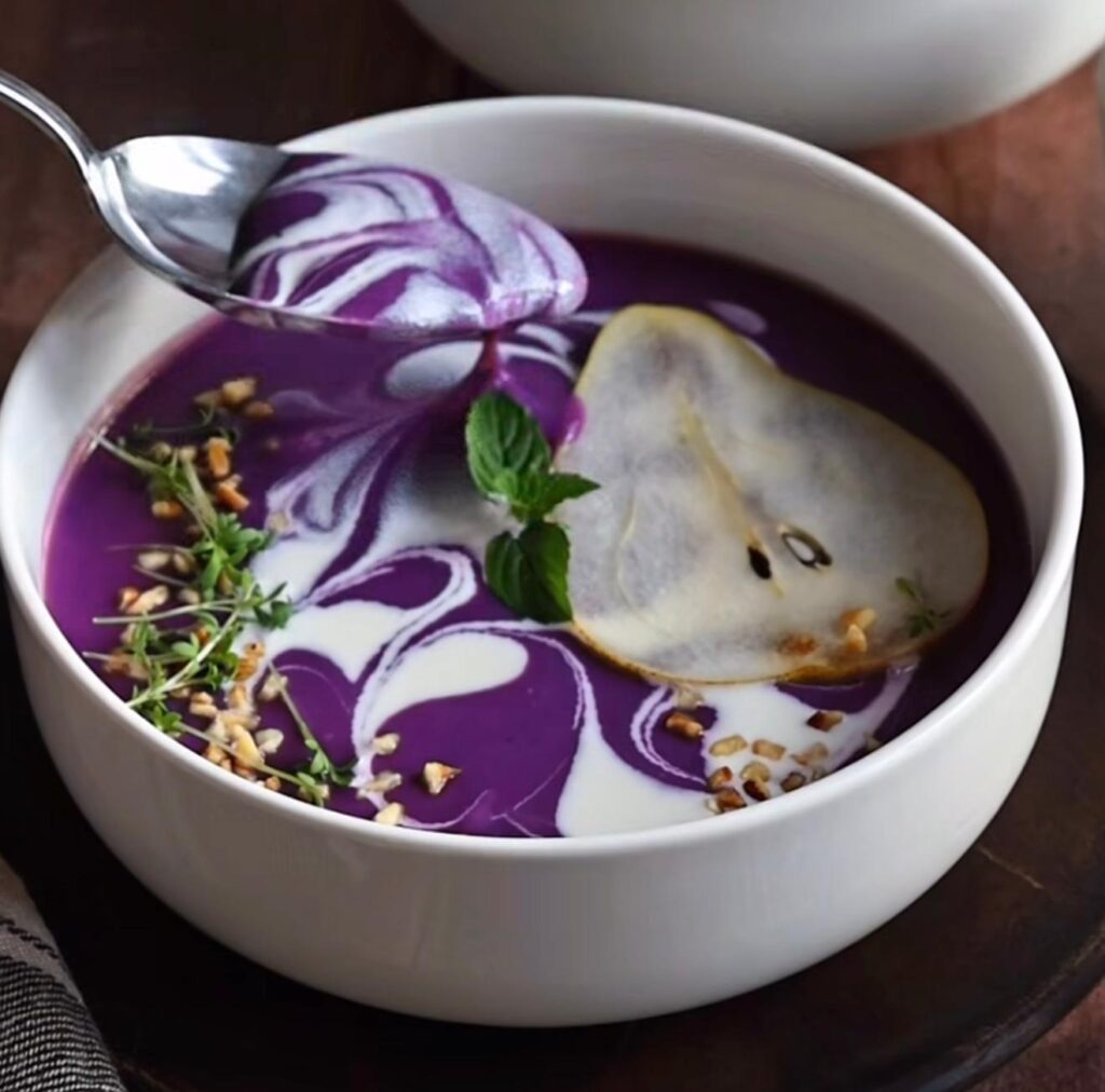 Supă cremă de varză roșie, preparatul care colorează orice masă