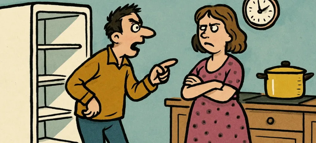 Ceartă în cuplu. Dragă, e frigiderul gol, fă și tu ceva de mâncare! E genial ce răspunde soția