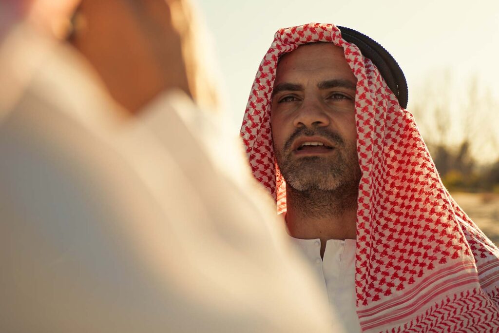 La palatul unui şeic, opreşte un autocar din care coboară un grup numeros de femei în vârstă.