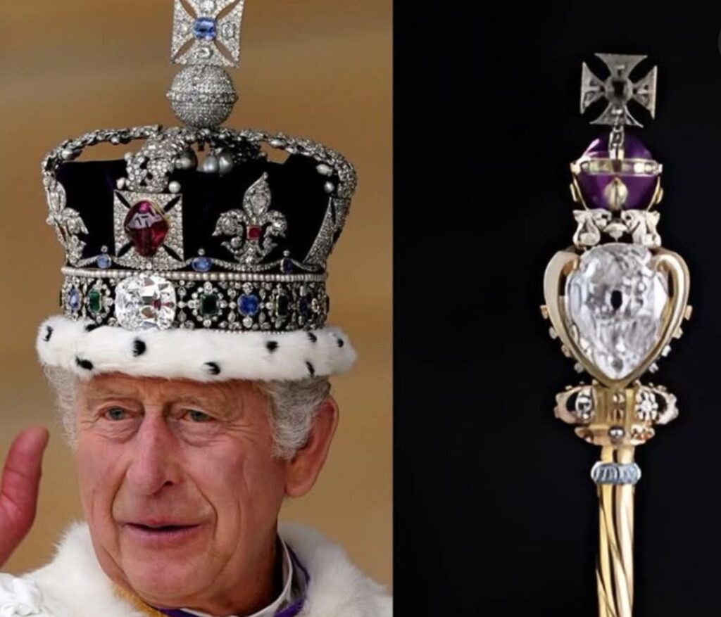 Tradiția britanică de a deține un sceptru din aur și pietre prețioase a început odată cu încoronarea lui Carol al II-lea în 1611. Sceptrul cu diamante subliniază puterea „dată de Dumnezeu” a monarhiei și reprezintă coroana, care deține bogății și putere nemăsurate.