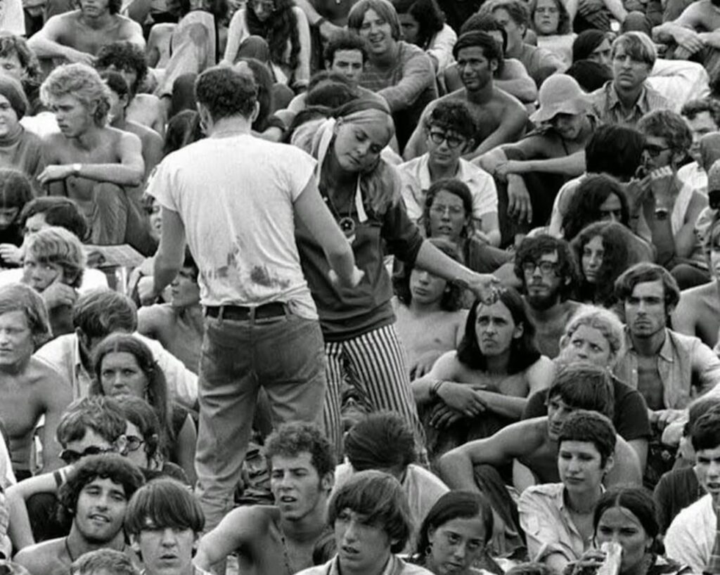 Festivalul Woodstock din 1969 a devenit emblema mișcării hippie și a contraculturii anilor ’60. Organizatorii și-au dorit un eveniment care să adune tinerii pentru a celebra muzica, libertatea și pacea, într-un context de protest cultural față de război, segregare și norme sociale stricte. Atmosfera festivalului a fost marcată nu doar de muzică live, ci și de exprimare liberă, experiențe colective (inclusiv orgii) și un profund spirit comunitar.