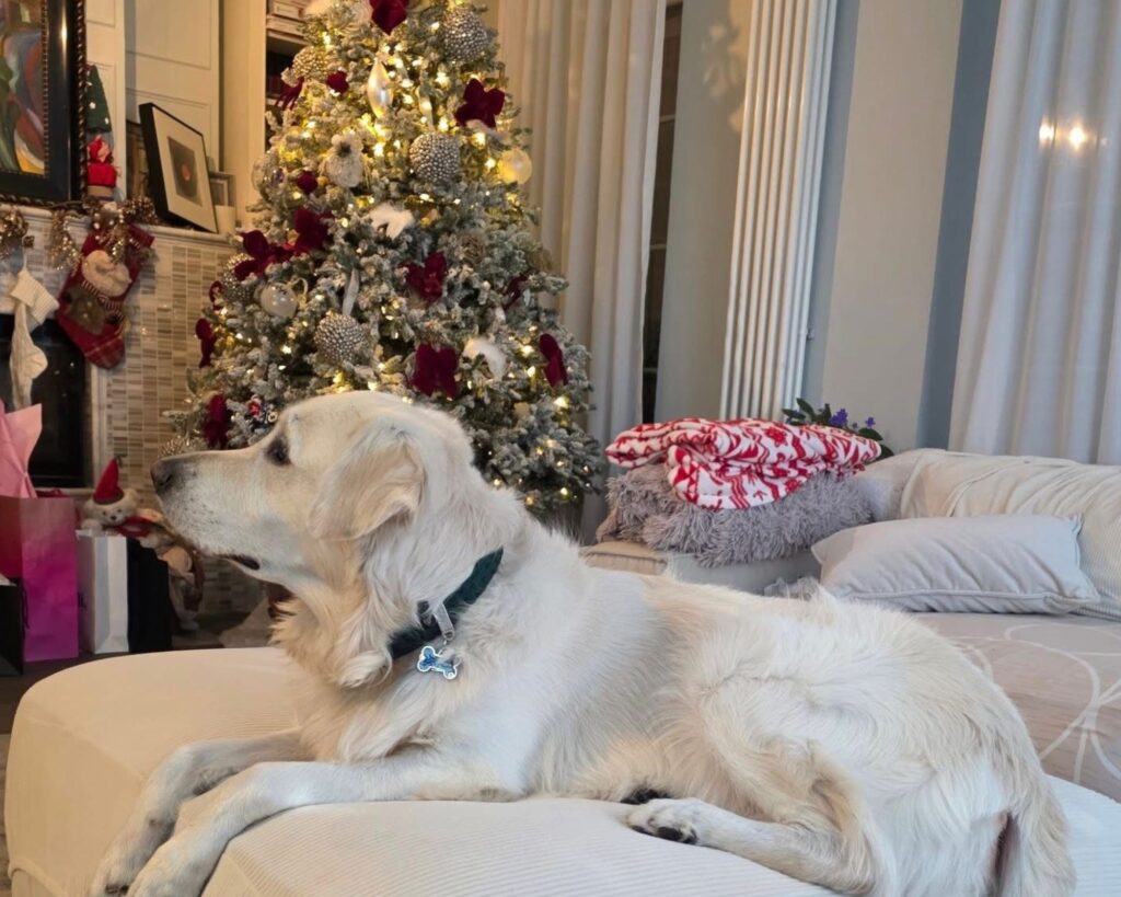 După ce a arătat casa decorată pentru Crăciun, Florin Dumitrescu a revenit, cu o imagine în care apare bradul, iar în fața lui pe canapea, cățelul familiei, Athos. Juratul a urat de pe acum tuturor cele bune: „Crăciun fericit!”.