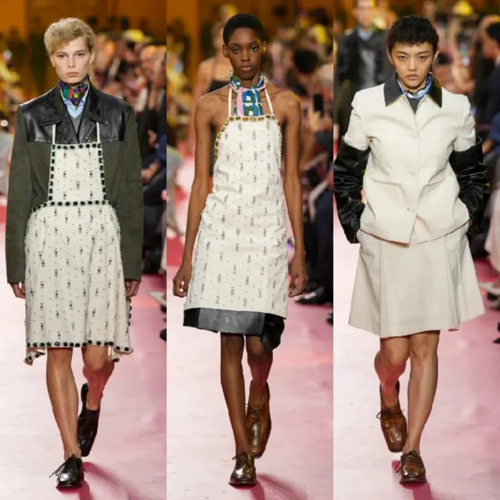 Miu Miu a pus șorțul în centrul colecției SS26 ca simbol al muncii casnice și al muncii feminine – fie în fabrici, fie în bucătării – dar reinterpretat ca element de modă, cu valoare estetică și conceptuală.