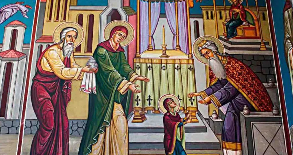 Se crede că această sărbătoare ar fi existat înainte de secolul al VI-lea, fiind menționată chiar din secolul al IV-lea de Sfântul Grigorie de Nyssa. Momentul, plin de tradiții, simbolizează aducerea Maicii Domnului la temple de către părinții săi.
