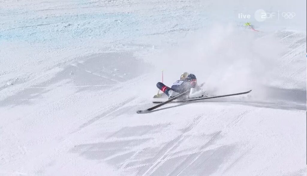 Accidentul s-a produs la doar câteva secunde după start. Vonn, în vârstă de 41 de ani, a pierdut controlul schiurilor după ce și-a agățat brațul de o poartă de slalom în aer, fiind proiectată cu forță pe pârtie. Impactul a fost extrem de dur, iar campioana a rămas întinsă pe zăpadă, fără să se ridice.