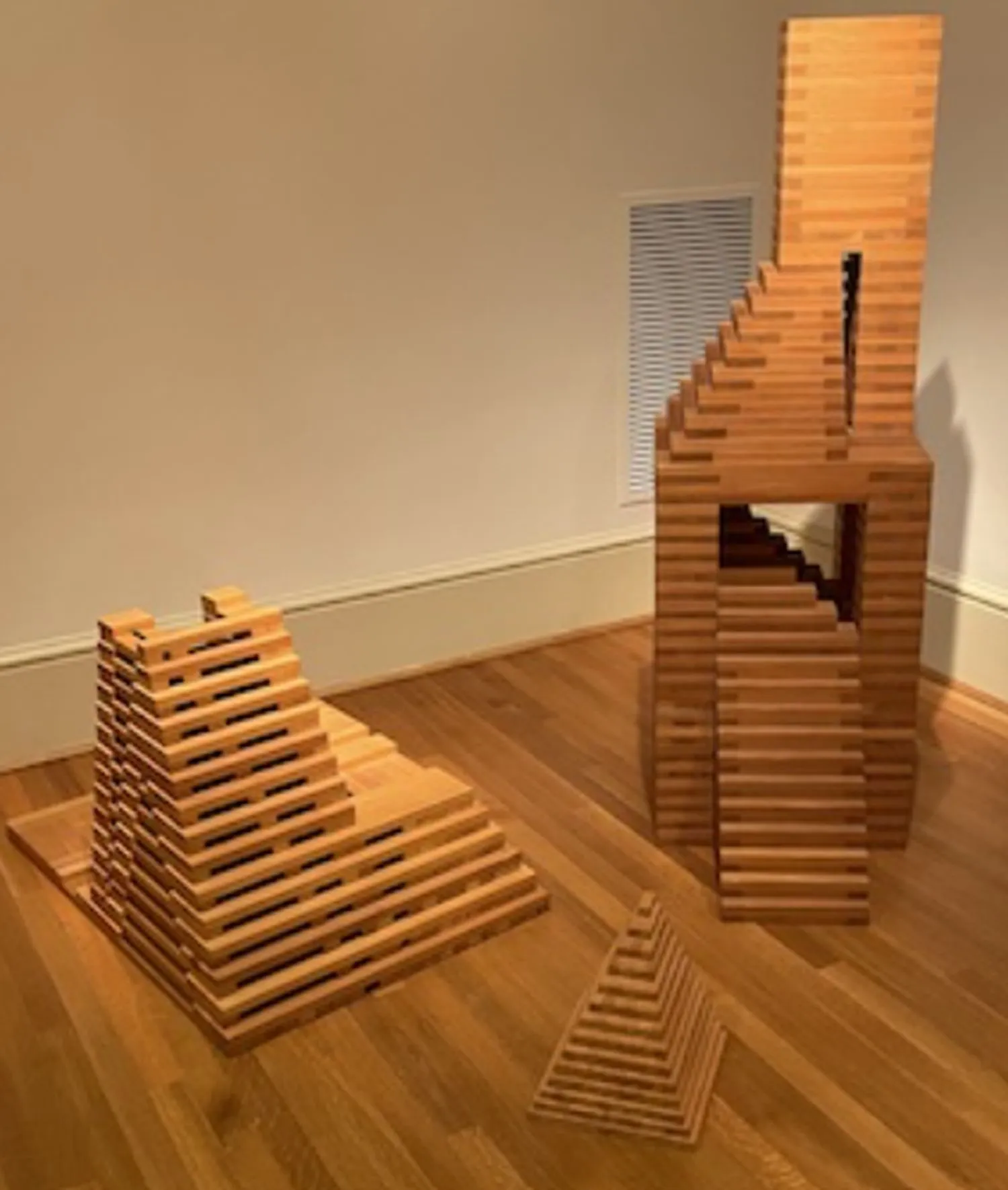 Lucrările sale, expuse în colecții prestigioase precum Muzeul de Artă Modernă din New York, transformau simple scânduri de lemn în structuri geometrice evocative, amintind de piramide sau turnuri antice.
