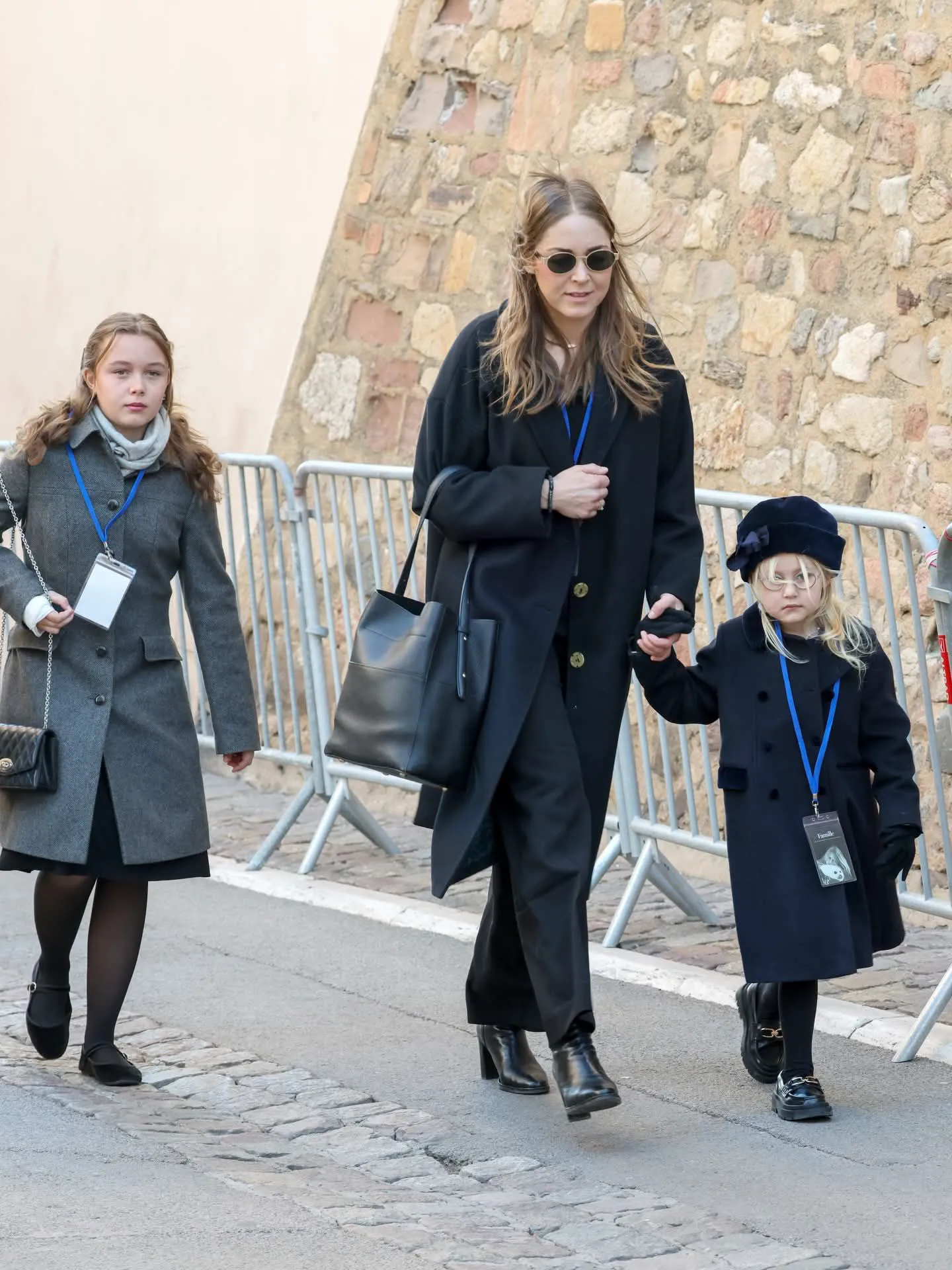 Ținându-se de mână cu mama ei, Anna Charrier Bjerkan, fetița a mers spre slujbă alături de o soră mai mare și de un frate — toți trei fiind strănepoții lui Brigitte Bardot. De asemenea, au fost prezenți sora Annei, Thea Charrier, precum și tatăl lor, Nicolas Charrier, în vârstă de 65 de ani, singurul fiu al actriței.