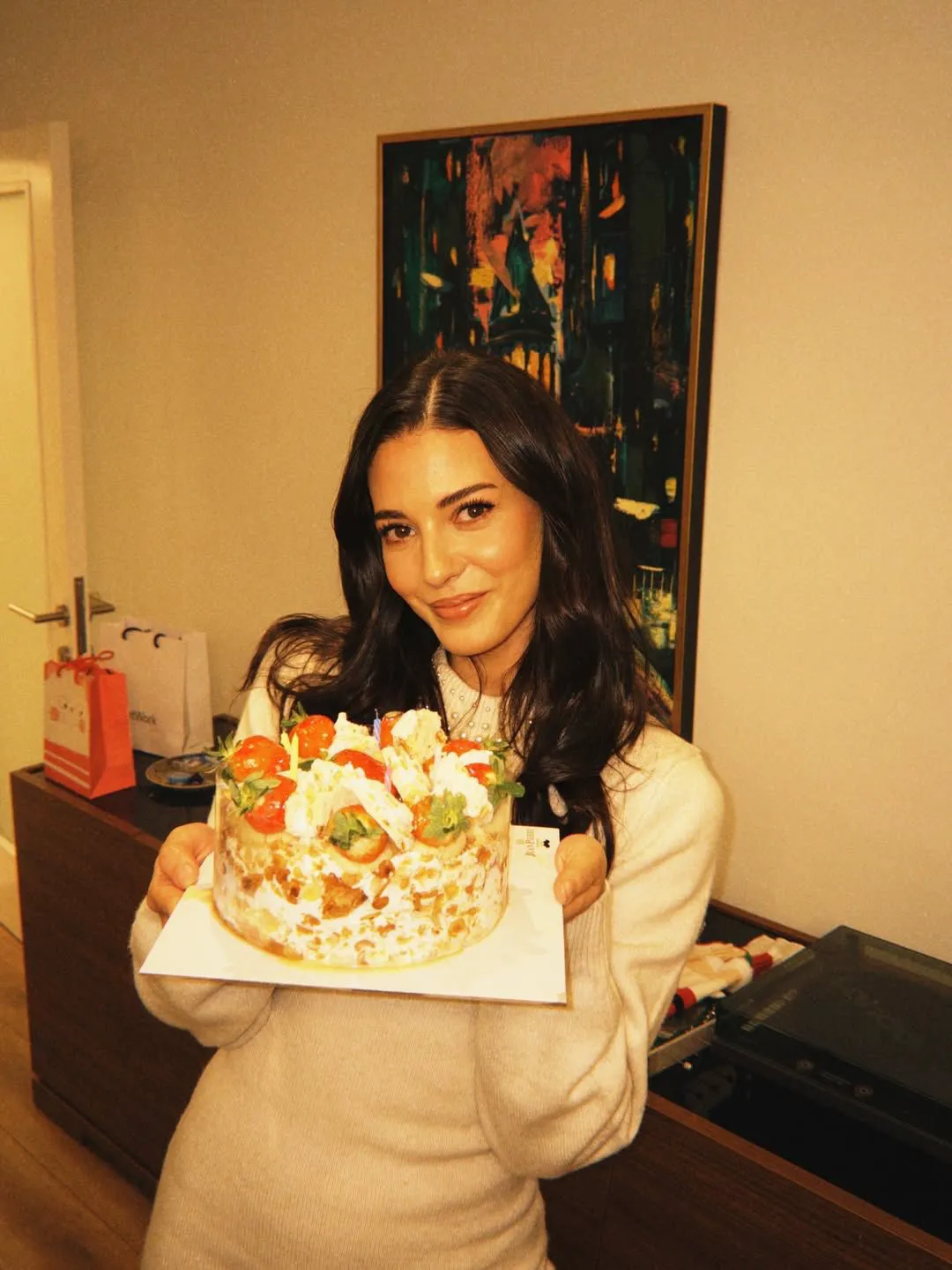 A sărbătorit acasă, cu câțiva prieteni și cu un tort spectaculos de fructe. A postat câteva fotografii în care se vede cât e de fericită.