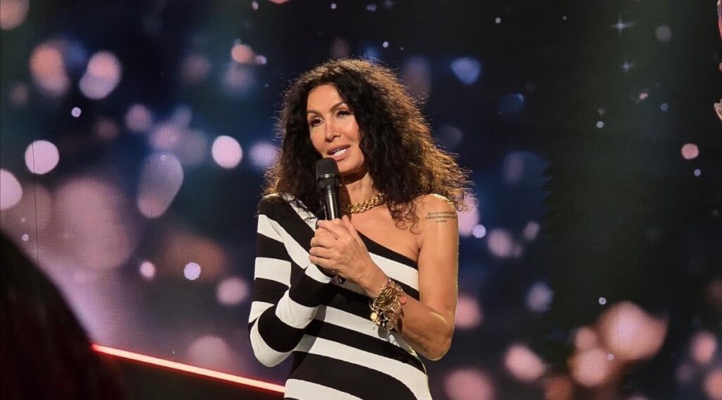 În ciuda pierderii suferite, Mihaela Rădulescu a dat dovadă de profesionalism la sărbătorirea a 30 de ani de Pro TV. A pășit pe scenă îmbrăcată într-o rochie mulată, alb-negru cu linii grafice, asimetrice, care îi urmăreau impecabil formele.